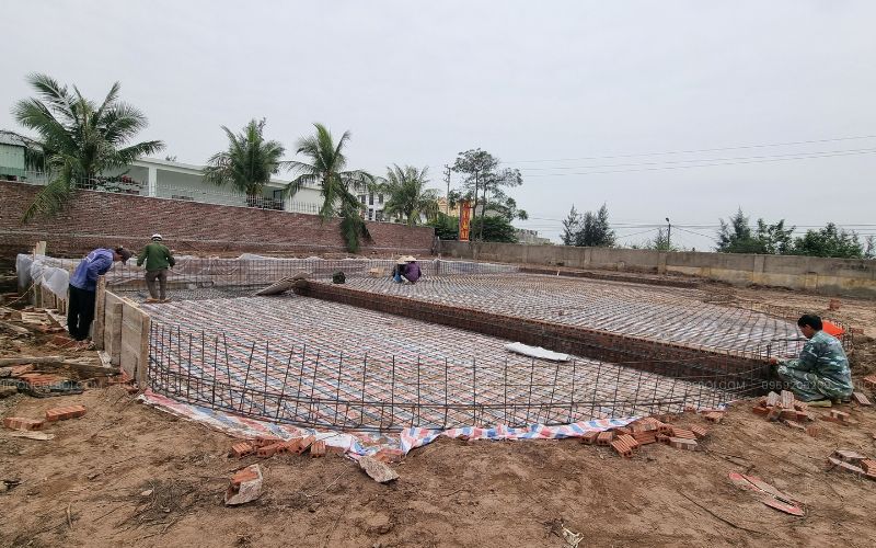 Các hạng mục được triển khai khoa học: đan thép – đổ bê tông – phòng máy – lắp thiết bị – xử lý nước – test vận hành.