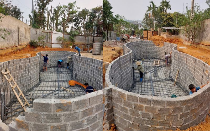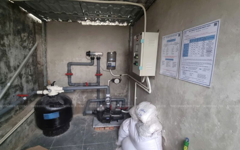 Sau khi phần xây dựng cơ bản hoàn thiện, đội ngũ kỹ thuật tiếp tục lắp đặt thiết bị ngoài bể, hệ thống xử lý nước và đấu nối phòng máy, đảm bảo toàn bộ hệ thống vận hành đồng bộ khi đưa vào sử dụng.