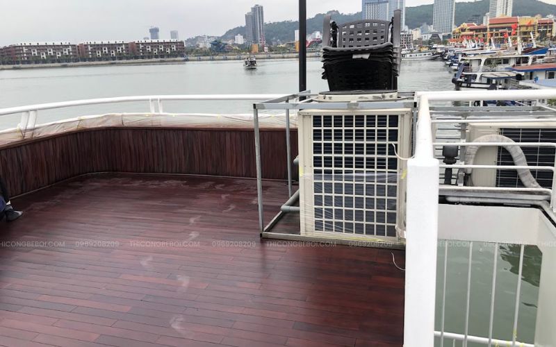 Để đáp ứng tiêu chuẩn dịch vụ cao cấp, bể sục được trang bị máy gia nhiệt Sirac công suất 20kW, giúp duy trì nhiệt độ nước lý tưởng ngay cả khi thời tiết thay đổi. Đây là yếu tố quan trọng giúp du khách có thể trải nghiệm bể sục mọi thời điểm trong ngày, nâng cao chất lượng dịch vụ và giá trị khai thác của du thuyền.