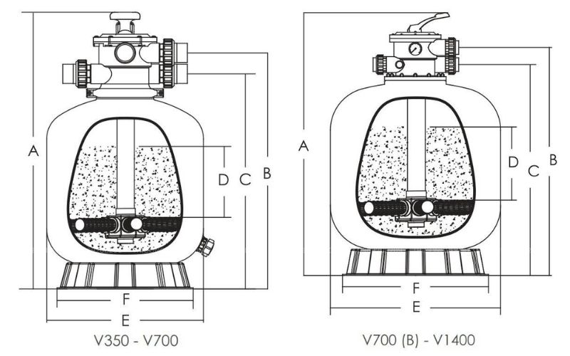 Bảng thông số kỹ thuật một số model trong dải bình lọc cát bể bơi Emaux V series