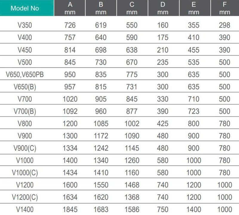 | V700 | 0.4 | 1.5"/ 50 | 19.50 | 210 |