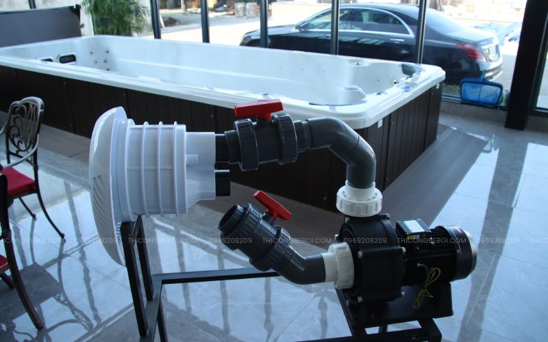 – Hoạt động kết hợp với máy bơm hồ bơi để tạo dòng nước mạnh đẩy ngược chiều.