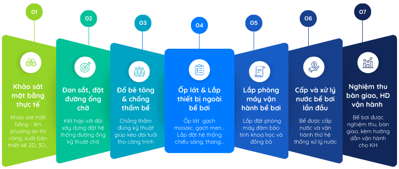 Quy trình thi công bể bơi cam kết chất lượng tiến độ - hỗ trợ kỹ thuật trọn đời
