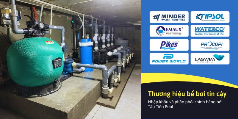 Toàn bộ hệ thống thiết bị bể bơi được Tân Tiến lắp đặt tập trung trong phòng kỹ thuật theo nguyên tắc khoa học và đồng bộ, bao gồm: máy bơm, bình lọc, tủ điện điều khiển, các đầu mục khác được KH lựa chọn trong hợp đồng thi công bể bơi. Việc bố trí hợp lý giúp hệ thống vận hành ổn định, dễ thao tác, đồng thời thuận tiện cho công tác kiểm tra, bảo trì và nâng cấp thiết bị khi có nhu cầu trong tương lai.