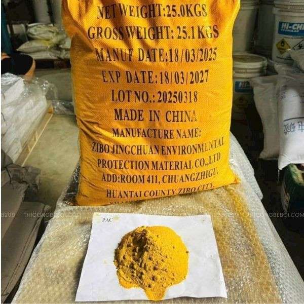 PAC bột có cấu trúc hạt mịn, màu vàng nâu đặc trưng, chứa hàm lượng nhôm oxit cao. Khi được pha loãng thành dung dịch và đưa vào nước, các ion nhôm sẽ nhanh chóng trung hòa điện tích của các hạt bẩn, khiến chúng liên kết với nhau tạo thành bông cặn lớn. Những bông cặn này có xu hướng lắng nhanh xuống đáy, giúp nước phía trên trở nên trong rõ rệt chỉ sau thời gian ngắn.