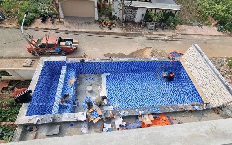 Quy trình ốp gạch mosaic bể bơi đúng tiêu chuẩn