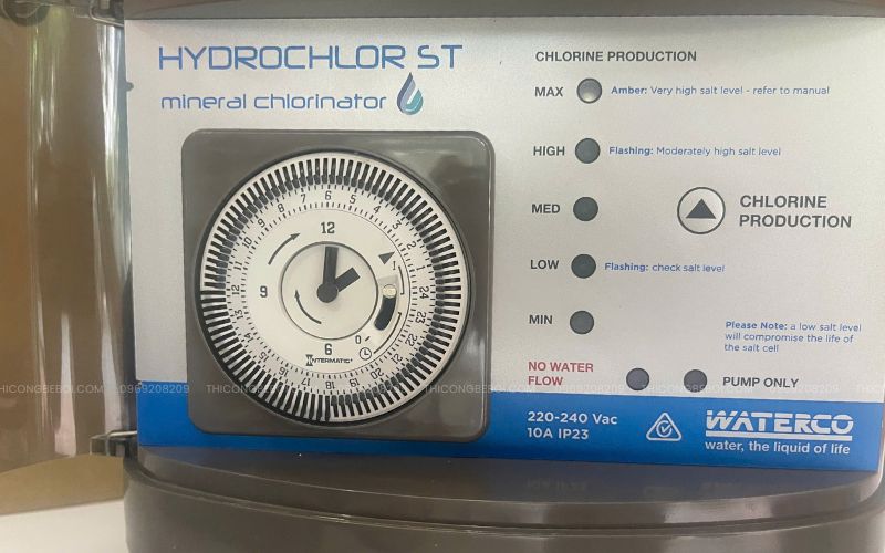 Hệ thống điều khiển của Hydrochlor MK3 được thiết kế trực quan, dễ quan sát và thao tác. Người dùng có thể cài đặt thời gian hoạt động một cách nhanh chóng nhờ bộ hẹn giờ tích hợp. Bộ điều khiển còn được trang bị pin dự phòng, có khả năng lưu giữ cài đặt đến 150 giờ, tránh thất thoát dữ liệu khi mất điện.