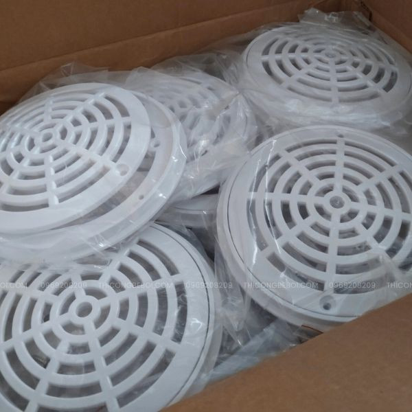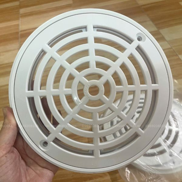 Sản phẩm được chế tạo từ nhựa ABS trắng, có độ cứng cao, không giòn gãy và chịu lực tốt khi có người đứng lên trên. Cấu tạo gồm mặt thu, vòng xoáy và ốc kết nối inox, đảm bảo cố định chắc chắn dưới đáy bể. Bề mặt nắp được thiết kế nhiều khe thoát nước, vừa thu gom hiệu quả, vừa giữ lại các vật thể lớn như lá cây, tóc, cặn bẩn… giúp bảo vệ đường ống và tăng tuổi thọ cho hệ thống lọc.