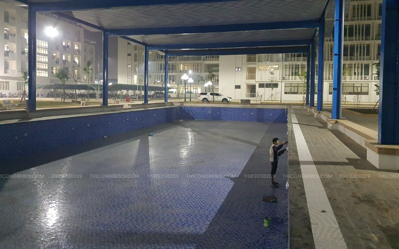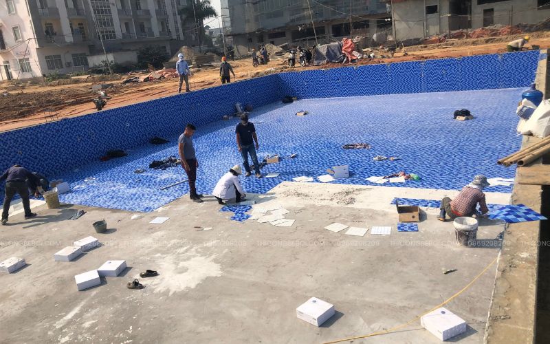 Ngay từ giai đoạn thi công phần thô của công trình, Tân Tiến đã phối hợp chặt chẽ cùng đội xây dựng, tham gia đặt các đường ống chờ, bố trí kỹ thuật liên quan đến bể bơi và các hạng mục phụ trợ. Cách làm này giúp các công việc kỹ thuật được triển khai đúng ngay từ đầu, hạn chế tối đa việc điều chỉnh phát sinh về sau và đảm bảo sự đồng bộ khi bể bơi đi vào vận hành.