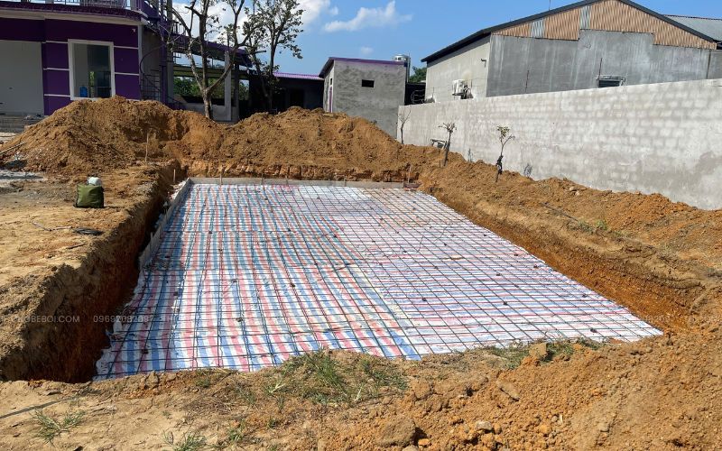 Trong khuôn viên một ngôi nhà tại Ba Vì, Tân Tiến đang triển khai hạng mục bể bơi gia đình với định hướng sử dụng bền vững và phục vụ nhu cầu thư giãn hằng ngày của các thành viên. Ngay từ giai đoạn đầu, bể bơi đã được đưa vào kế hoạch tổng thể của công trình, từ việc lựa chọn vị trí, định hình mặt bằng cho đến bố trí hệ thống kỹ thuật, nhằm đảm bảo sự hài hòa với không gian sân vườn và thuận tiện trong quá trình sử dụng.